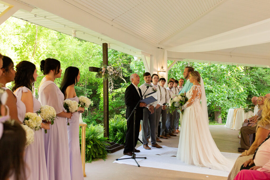 Emma and Logan had a fabulous day! But it was HOT! Summer in South Carolina is hot anyway, but it was hotter than it should have been for the end of June, so we had to make some adjustments. Rather than have the ceremony outside like we wanted to, we moved it up under the pavilion with the ceiling fans moving the air. The river was still in the background, just not as much as we were all hoping. Emma and Logan didn’t seem to mind, and they had an absolutely wonderful happy day!